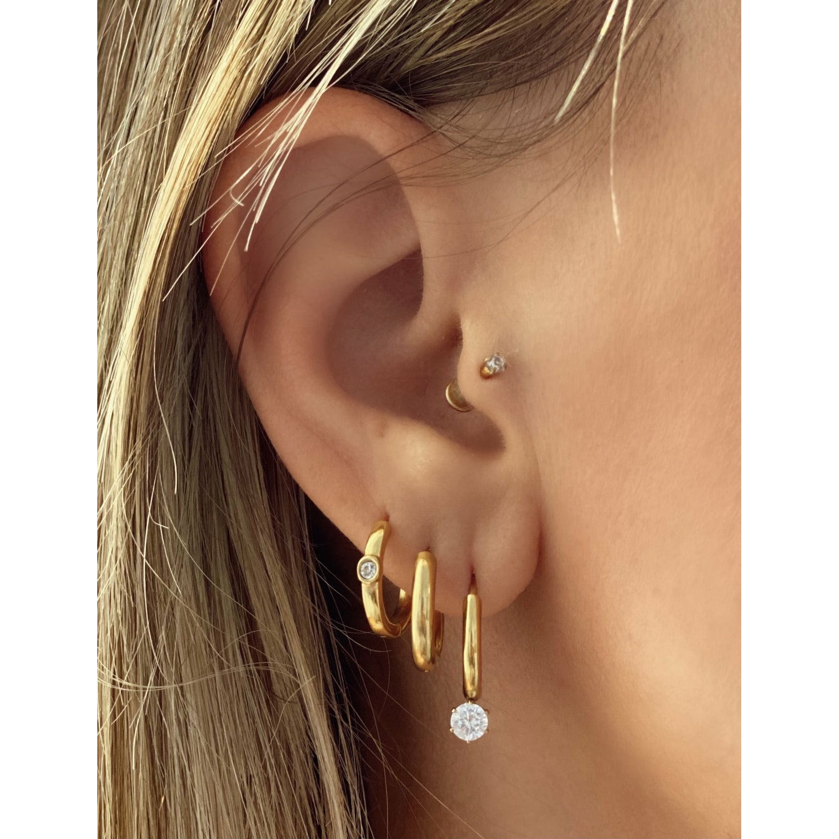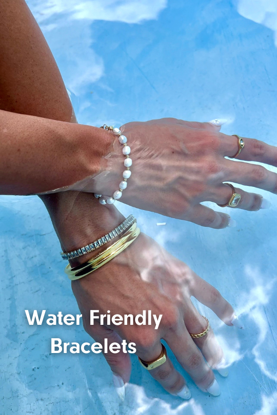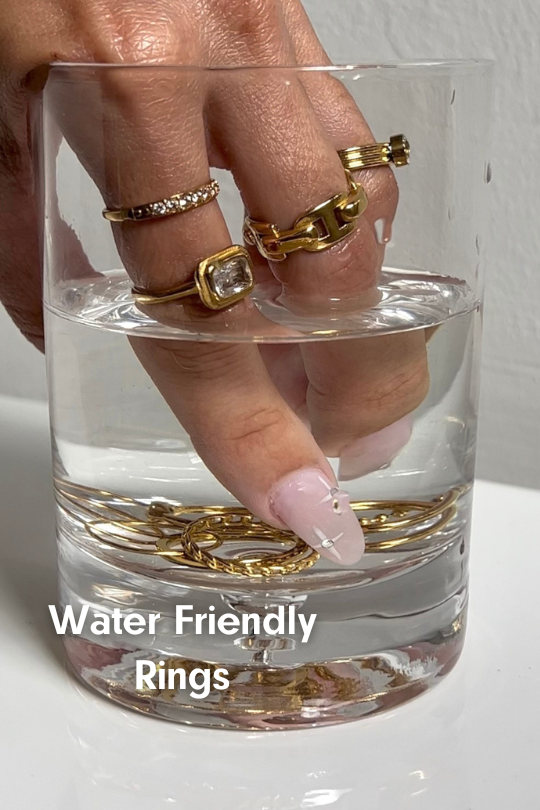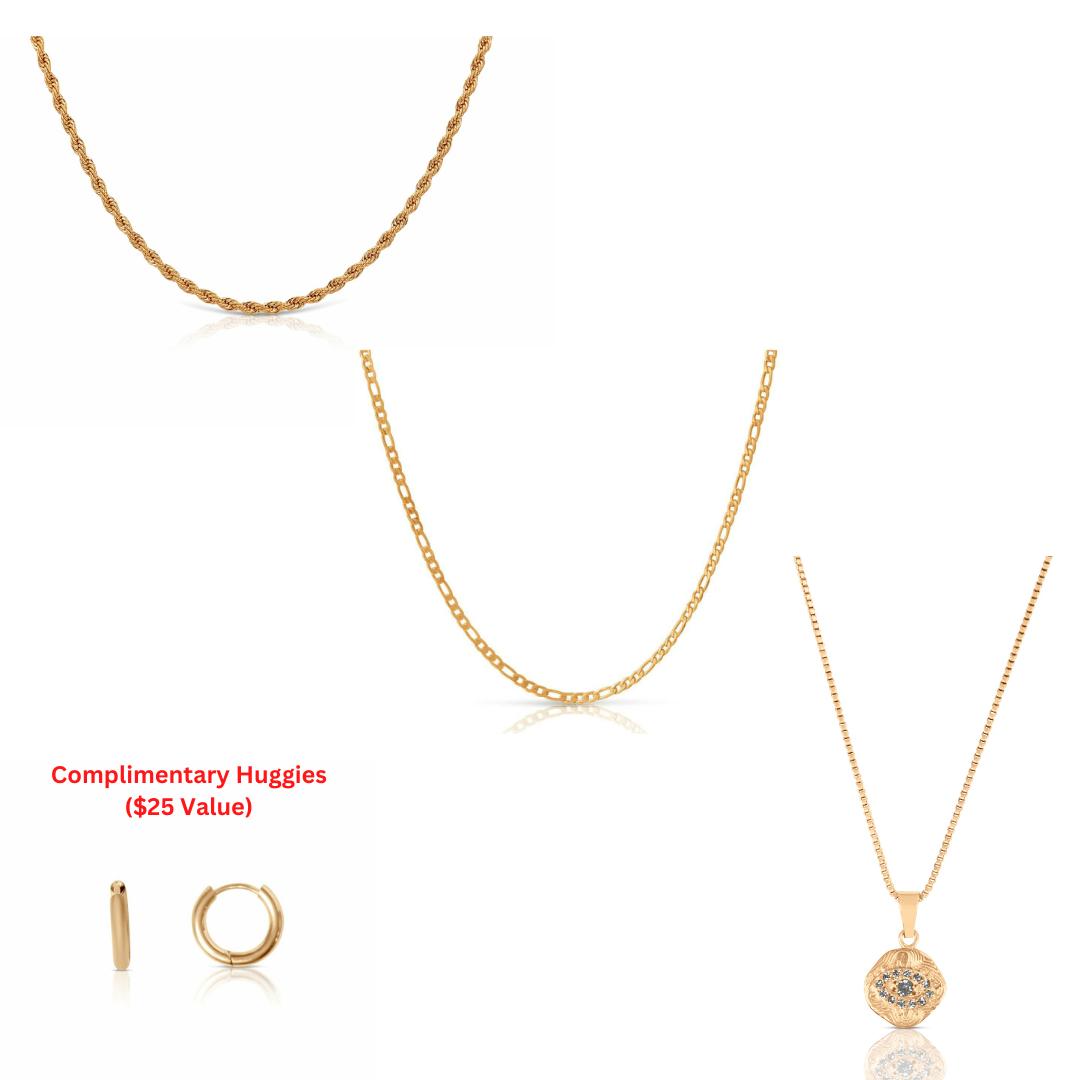 All of our jewelry (except some items in our $15 and under sale) are made using 18K gold plating over stainless steel metal. Stainless Steel does not tarnish or rust making it water resistant, tarnish free and hypoallergenic.