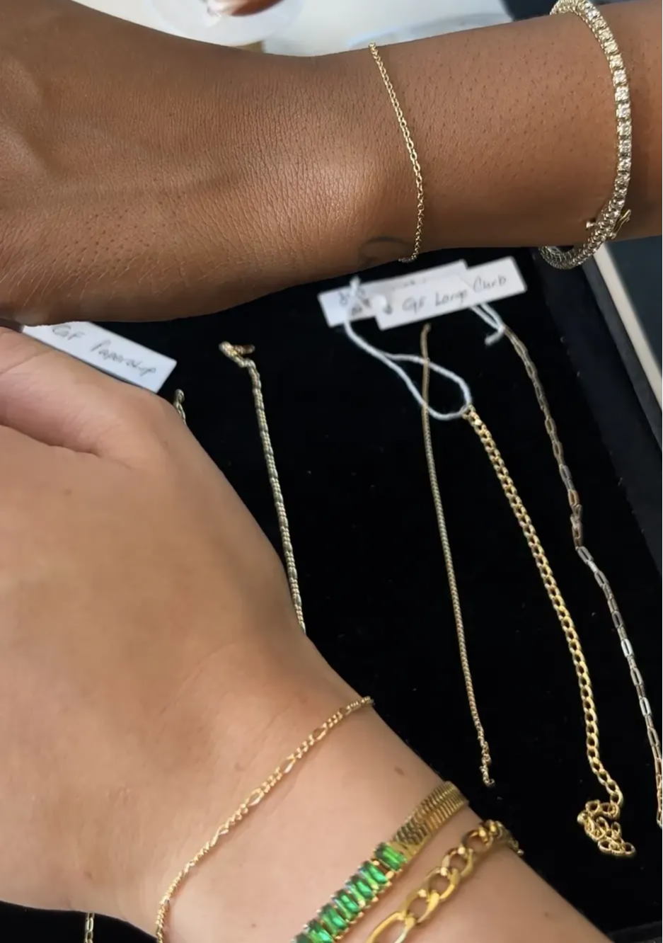 First you book your appointment with us come in and choose your jewelry piece, chose between gold filled or 14kt gold, and choice of chain style such as paperclip, figaro, classic cable, cuban, thin cuban, and thick cuban.