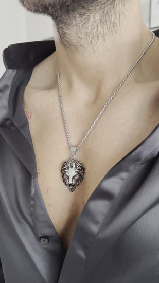 Our silver lion necklace is the perfect statement piece in our men's collection with this large lion pendant.