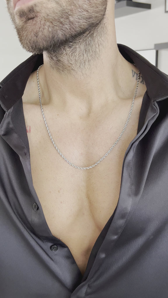 Men's silver rope necklace, perfect for a simple look alone or pairing with one of our other necklaces.
